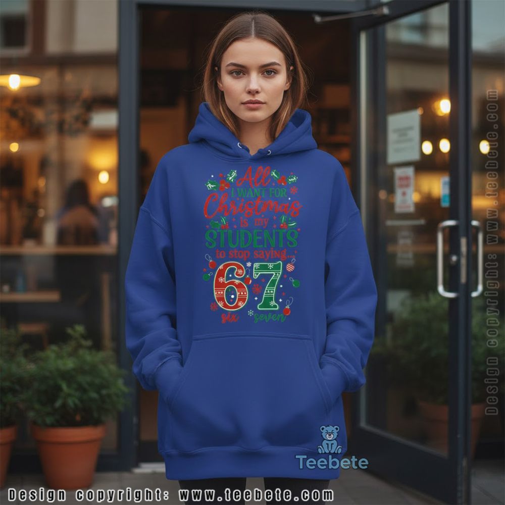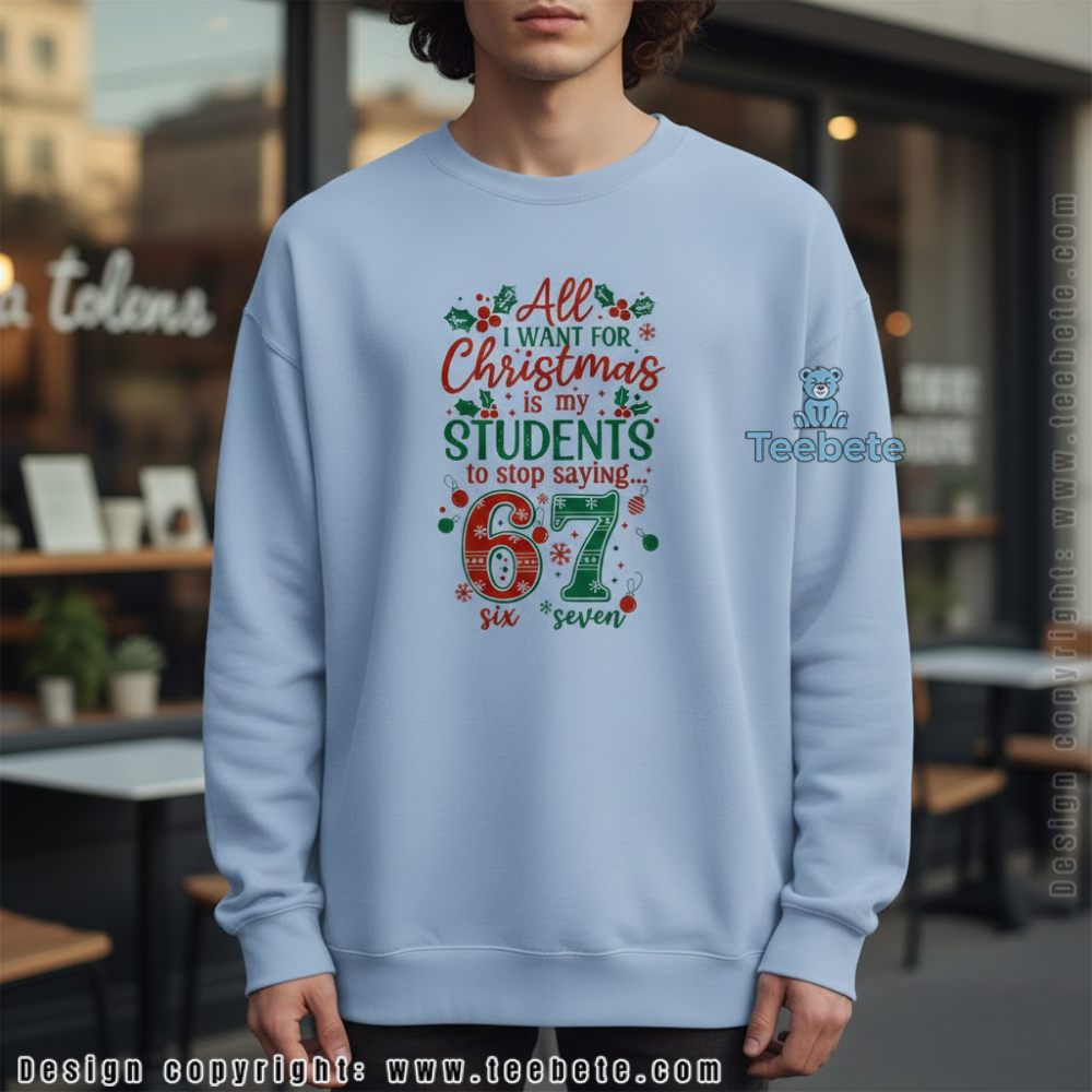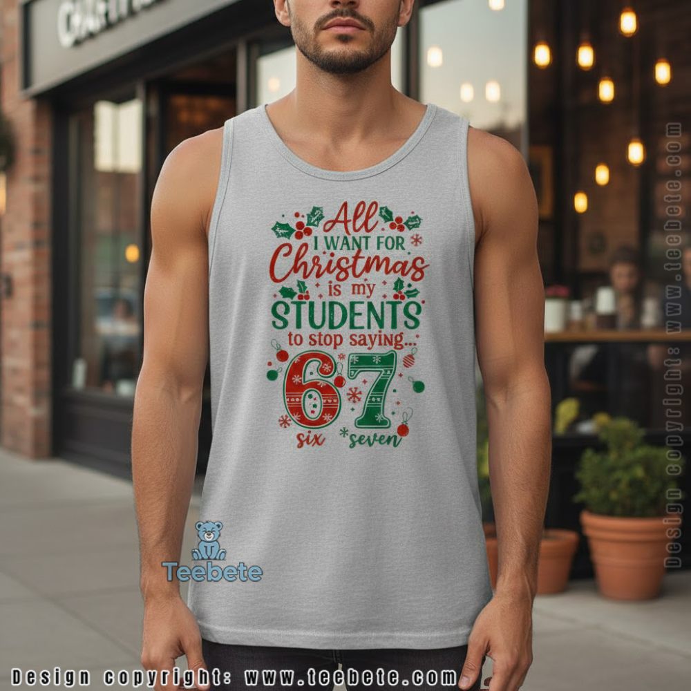 Don’t miss out on this must-have piece! Give the gift of laughter and fond memories this Christmas. Whether for yourself or the teacher in your life, this All I Want For Christmas Is My Students To Stop Saying 67 Teacher Shirt is sure to bring joy and smiles all season long.