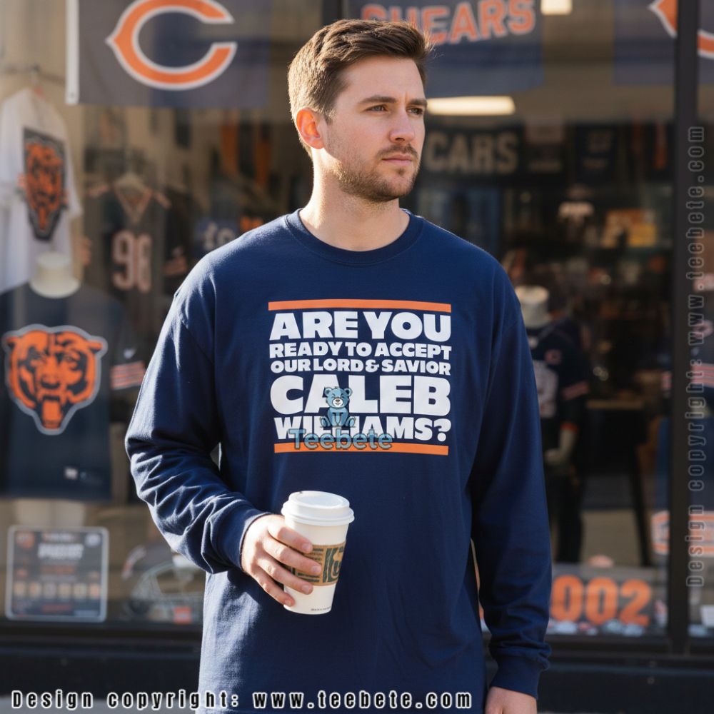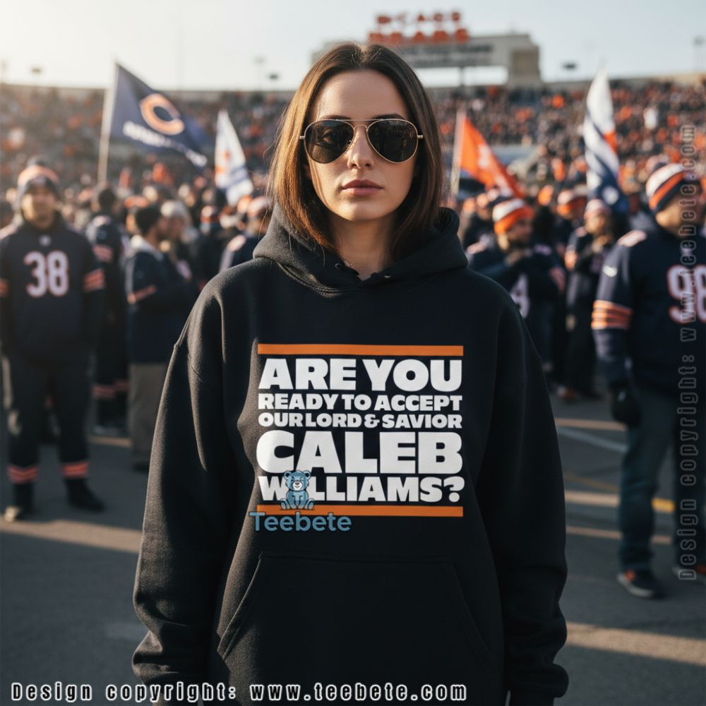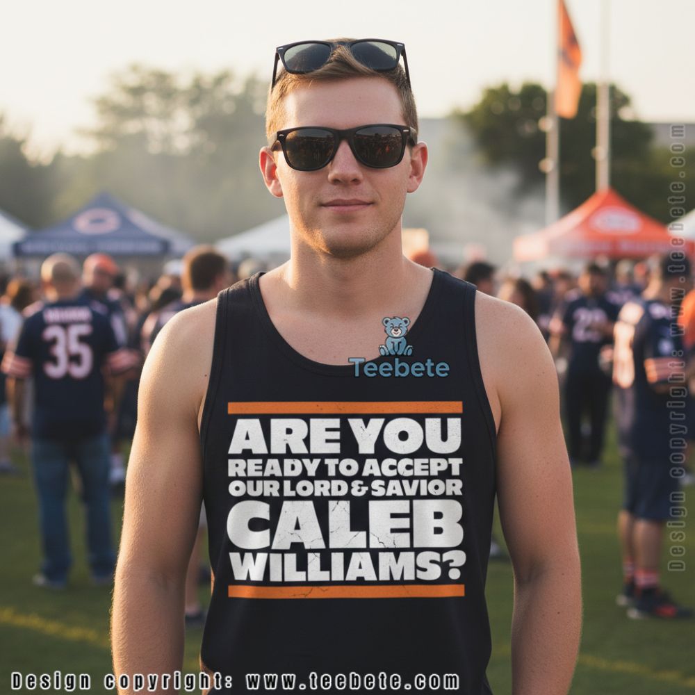 Dive into a captivating visual experience with the Are You Ready To Accept Our Lord And Savior Caleb Williams Shirt, a standout piece from Teebete. This T-shirt features a bold graphic layout that centers around an eye-catching text design. Rich, contrasting colors draw the eye, while masterful layering gives depth to the imagery. The vivid, full-coverage printing technique ensures that each element pops against the fabric, creating a dynamic visual story that stands out in any setting.