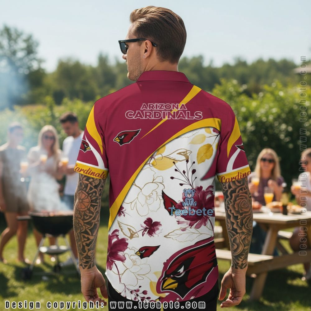 When you slip into the Arizona Cardinals Maroon and Gold Hibiscus Graphic Summer Shirt, vibrant visual elements come to life, capturing the spirit of sunny days ahead. This Hawaiian Shirt showcases a dynamic arrangement of hibiscus flowers in striking maroon and gold hues, expertly weaving in the team colors to enhance its eye-catching appeal. The full-coverage print beautifully contrasts the floral designs against a rich backdrop, bringing a tropical vibe that bursts with energy, making it an ideal choice for warmth and fun.
