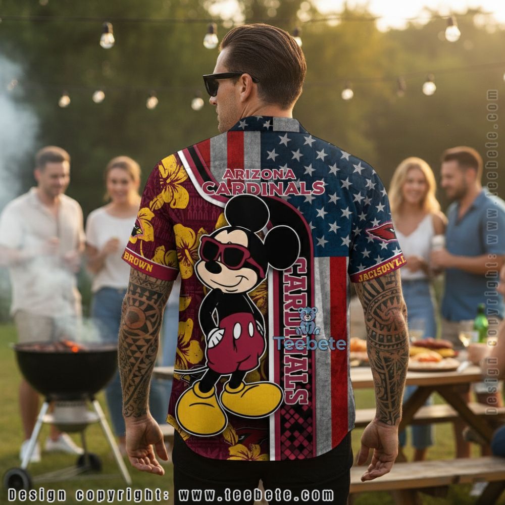 Boldly showcasing a playful blend of fandom and flair, this Hawaiian Shirt features the Arizona Cardinals Mickey Mouse American Flag Hibiscus Hawaiian Shirt design. The shirt’s vibrant layout combines iconic hibiscus flowers alongside the beloved Mickey Mouse character, set against a spirited red, white, and blue backdrop that pays homage to the American flag. Vivid, full-coverage printing brings the playful graphics to life, ensuring the patterns flow seamlessly from side to side for an eye-catching look.