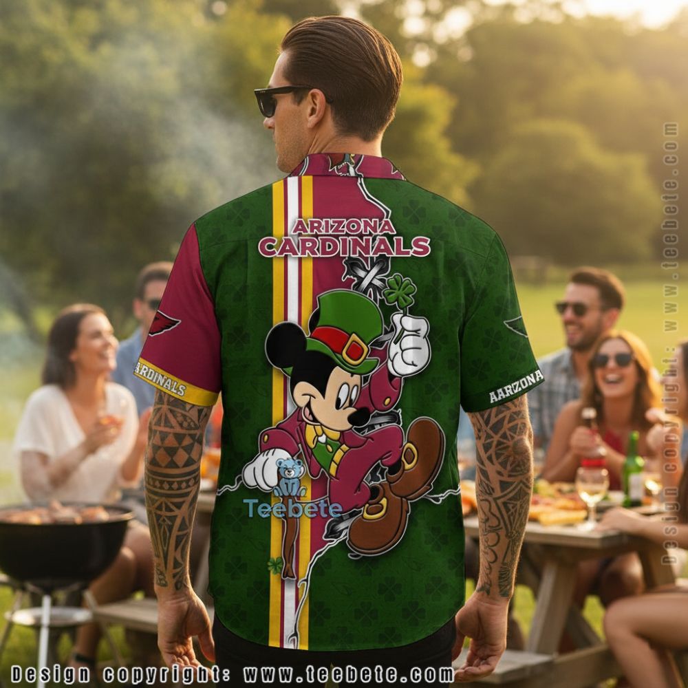 Infuse your wardrobe with a vibrant touch using the Arizona Cardinals Mickey Mouse St Patricks Day Shamrock Hawaiian Shirt. This eye-catching top features a lively assortment of shamrocks seamlessly blended with playful Mickey Mouse graphics, creating a whimsical yet spirited look. The full-surface printing captures the essence of St. Patrick’s Day with bright greens and cheerful whites, ensuring a radiant appearance. Layered collage elements accentuate the festive theme, while the arrangement of visuals offers a fun and lively aesthetic perfect for casual occasions.