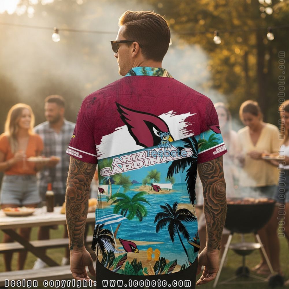 Infused with a festive, vacation-inspired aesthetic, this shirt captures the essence of summer leisure and sports enthusiasm. Unique graphics and stylistic choices elevate the visual experience, appealing to fans who want to showcase their team spirit during outdoor events or beach parties. The design’s vibrant mood is ideal for warm-weather occasions, reflecting the carefree vibes of lounging by the pool or enjoying a backyard barbecue while cheering for the Arizona Cardinals.