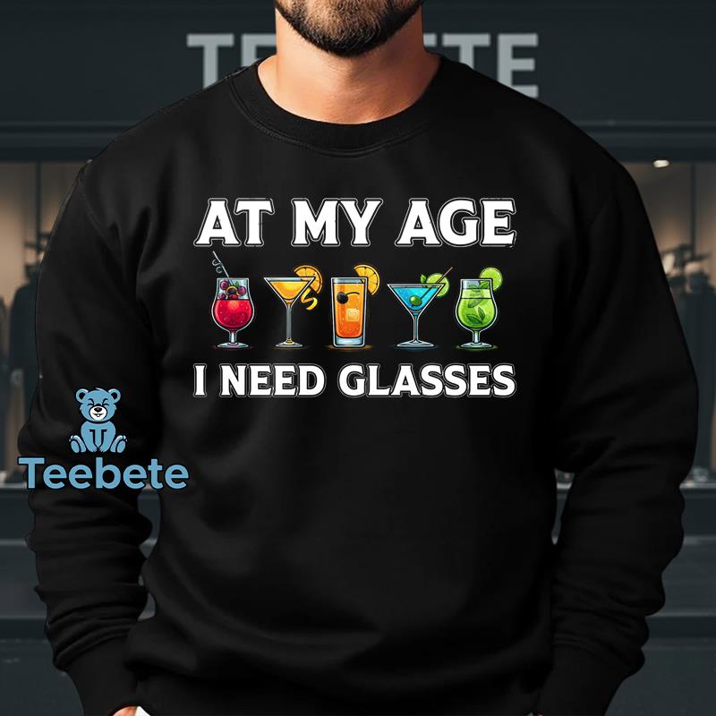 Brightly emblazoned across the fabric, the graphic design of the Wine Cocktail Lover At My Age I Need Glasses Shirt captures attention with its playful typography. The arrangement combines bold letters in a whimsical font, cleverly integrating wine-related imagery that hints at the joyous celebration typically associated with birthday gatherings or casual drinking parties. Rich, contrasting colors enhance the overall layout, creating a visually engaging experience that invites laughter and nods of recognition. This shirt masterfully balances humor and style, ensuring the message stands out effectively.