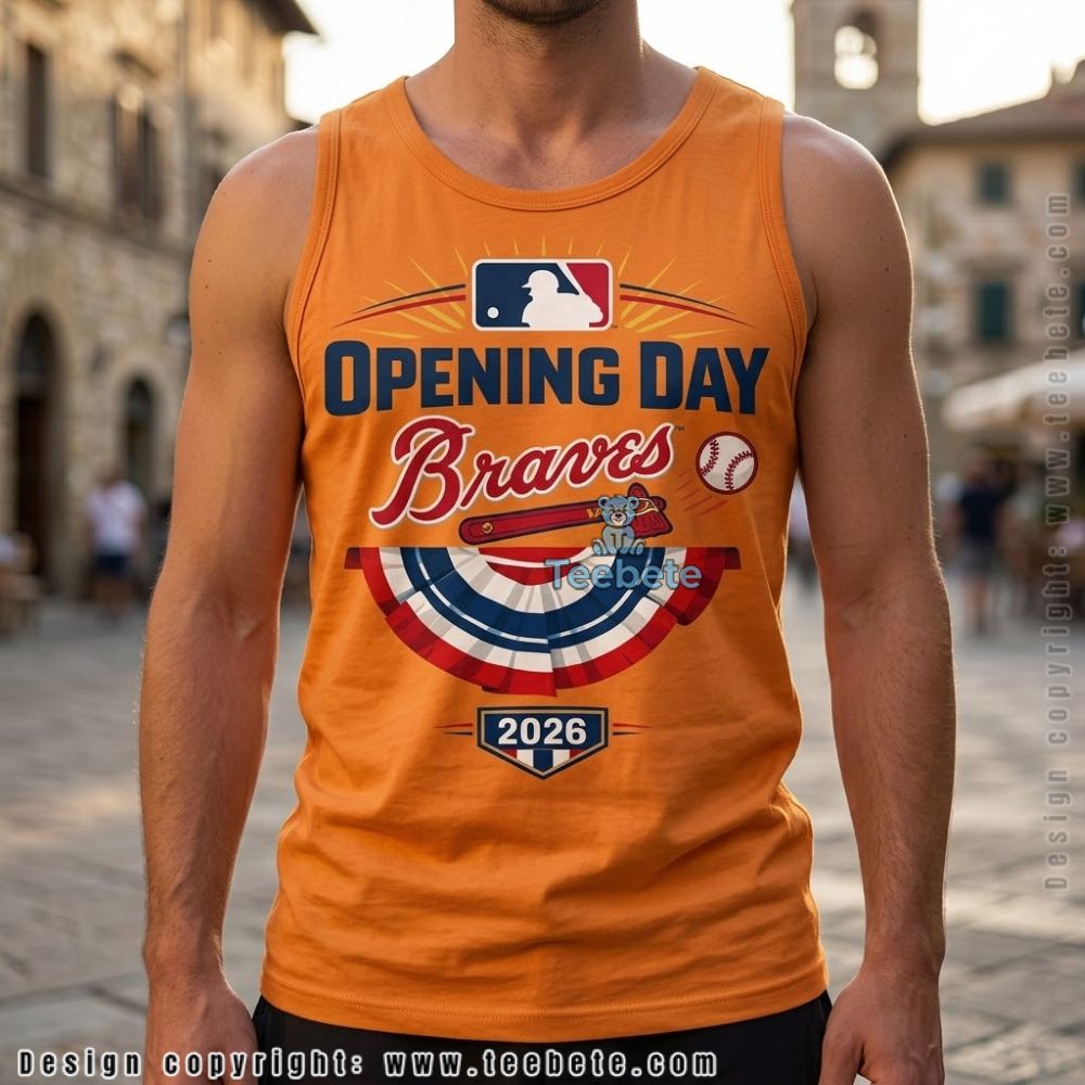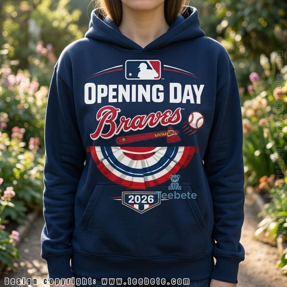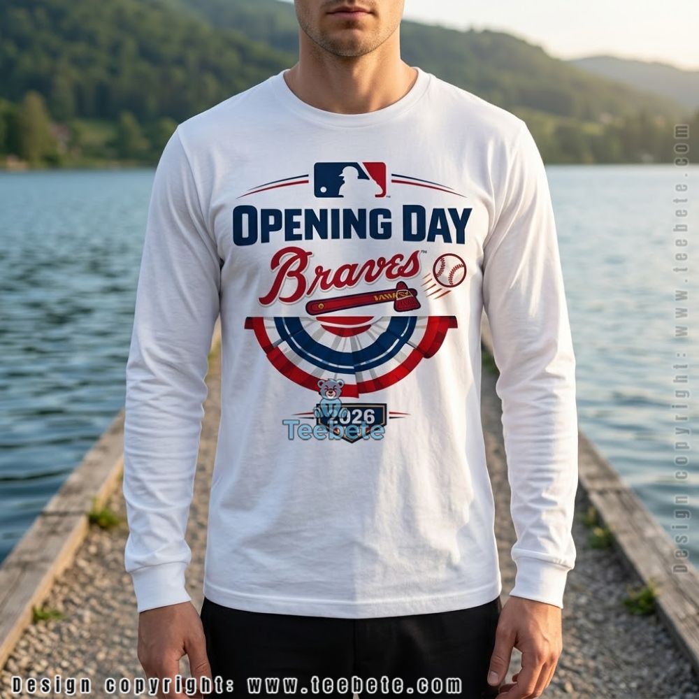 The vibrant colors of navy blue and crimson create a striking visual on this Baseball Tee, adorned with the “Opening Day 2026 Atlanta Braves Baseball Tee” design. A carefully arranged graphic composition features the iconic team logo splashed across the front, complemented by celebratory typography announcing “Opening Day 2026”. The balanced layout utilizes layered elements and varying font sizes, ensuring an eye-catching contrast that enhances the overall impact, making it a perfect choice for both spirited fans and stylish wearers alike.