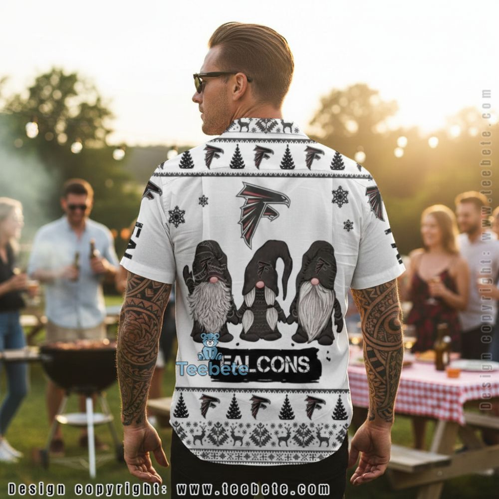 Dive into a vibrant holiday spirit with the Atlanta Falcons Christmas Gnomes Holiday Pattern White Hawaiian Shirt. This striking Hawaiian shirt features an eye-catching arrangement of festive gnomes adorned in Atlanta Falcons gear, seamlessly blending playful imagery with holiday motifs. The full-surface design perfectly contrasts against a crisp white background, making the colorful graphics pop. Intricate details combine with a layered collage printing style, ensuring that each element stands out vividly.
