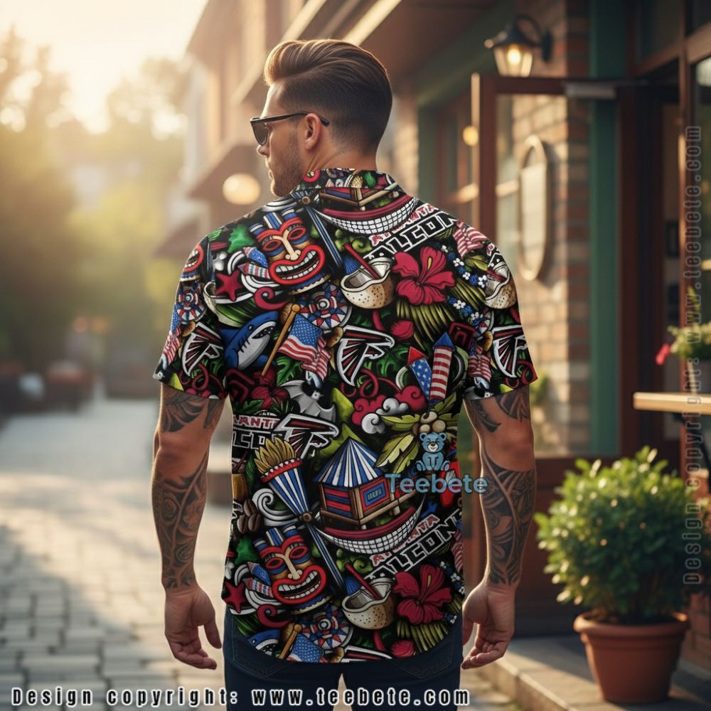 Step into summer with the exceptional Atlanta Falcons Tiki Mask and American Flag Summer Hawaiian Shirt by Teebete. This eye-catching Hawaiian shirt showcases a seamless blend of vivid graphics featuring the iconic Tiki mask alongside the stars and stripes of the American flag. The full-surface 3D printing creates a dynamic interplay of colors, allowing the fiery reds, deep blues, and pristine whites to pop. Each detail is thoughtfully arranged to capture attention, making this shirt a standout piece for any fan.