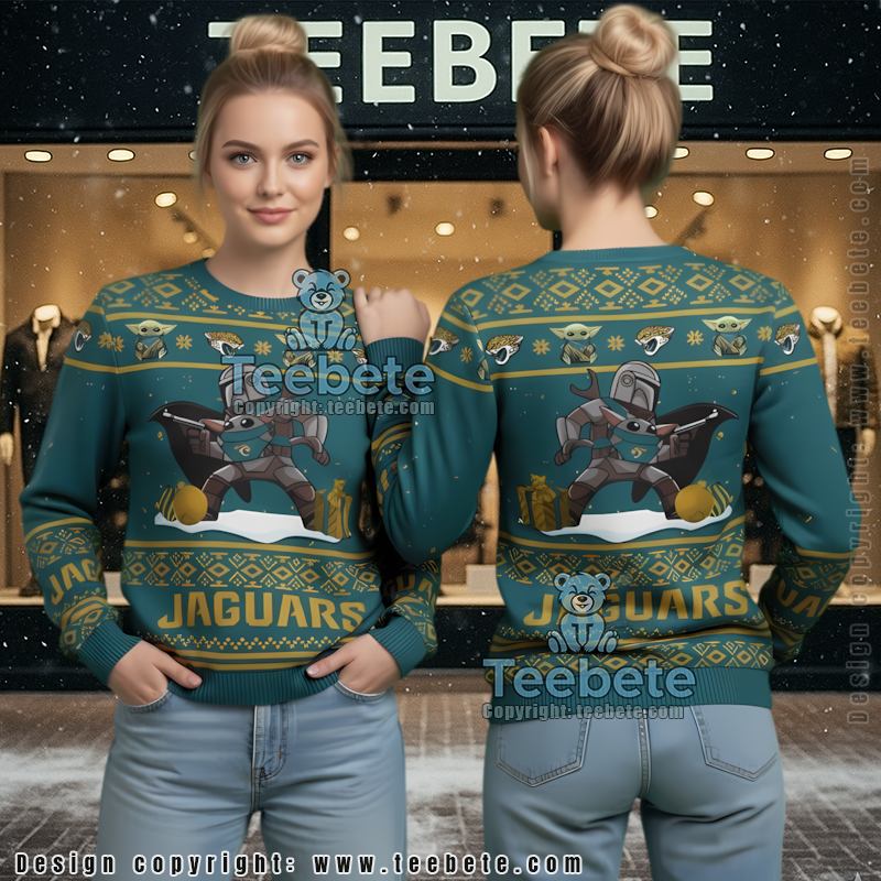 Don’t miss out on this must-have apparel for any die-hard fan. The Jacksonville Jaguars Baby Yoda Boba Fett Men’s Ugly Sweaters for Christmas Green is not just a clothing piece, but a statement of fandom and festive spirit. Make it a part of your wardrobe or gift it to a fellow Jaguars supporter—ideal for spreading joy this holiday season!