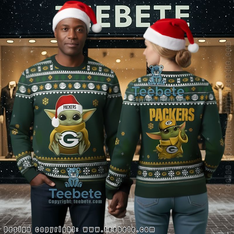Teebete draws inspiration from the vibrant community of NFL fans and the infectious charm of Baby Yoda. The mash-up of two beloved franchises elevates the cultural significance of this garment, appealing to die-hard Packers fans and Star Wars enthusiasts alike. Wear it proudly at your next game day or holiday party while sharing your love for both the Packers and intergalactic cuteness.