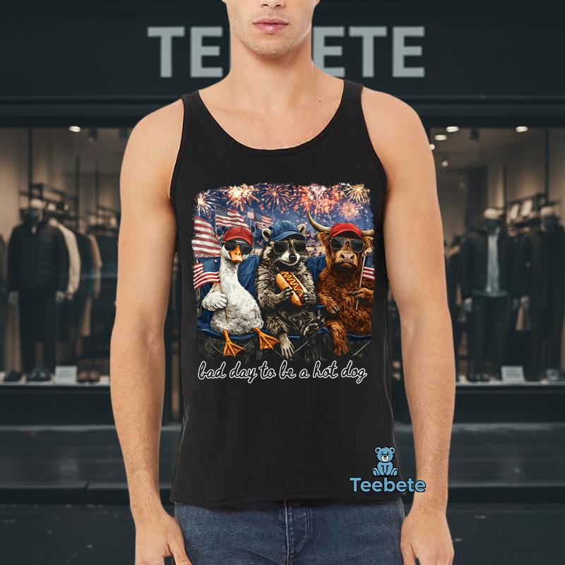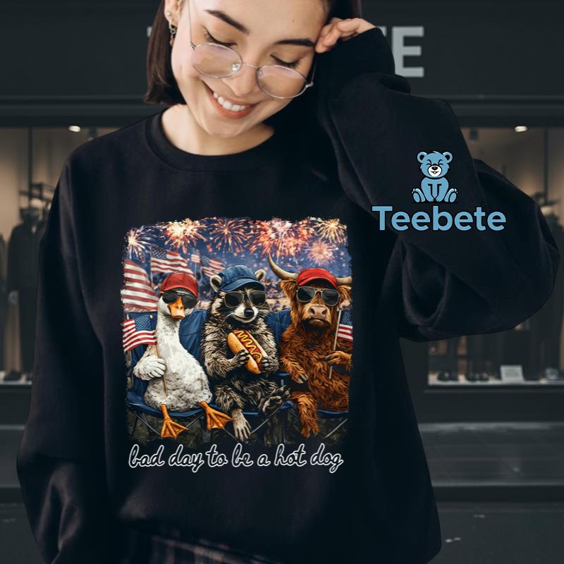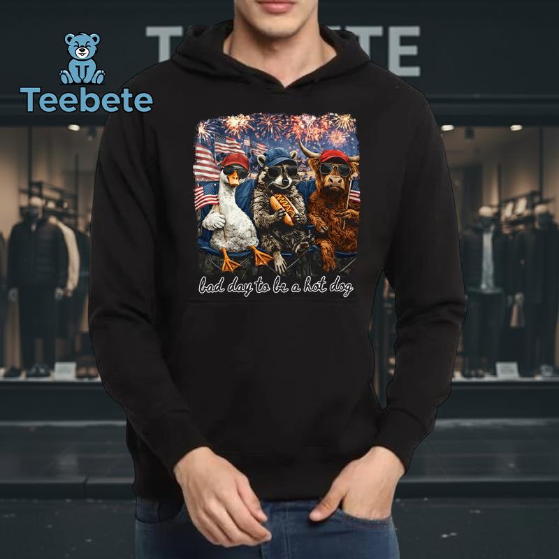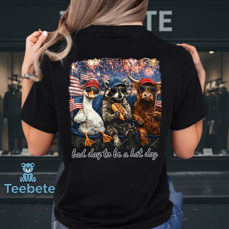Splashed across the T-Shirt is a humorous and eye-catching graphic that captures the essence of a playful spirit. The “Bad Day To Be A Hot Dog” design features a whimsical illustration of a cartoon hot dog, complete with exaggerated facial expressions and playful typography that draws attention. Set against a vibrant background, the bold color palette combines classic red, white, and blue with a touch of yellow, perfectly embodying the 4th Of July theme. The centered graphic composition ensures that the design is the focal point, making this 4th Of July Animal Lover T-Shirt a standout choice for festive gatherings.