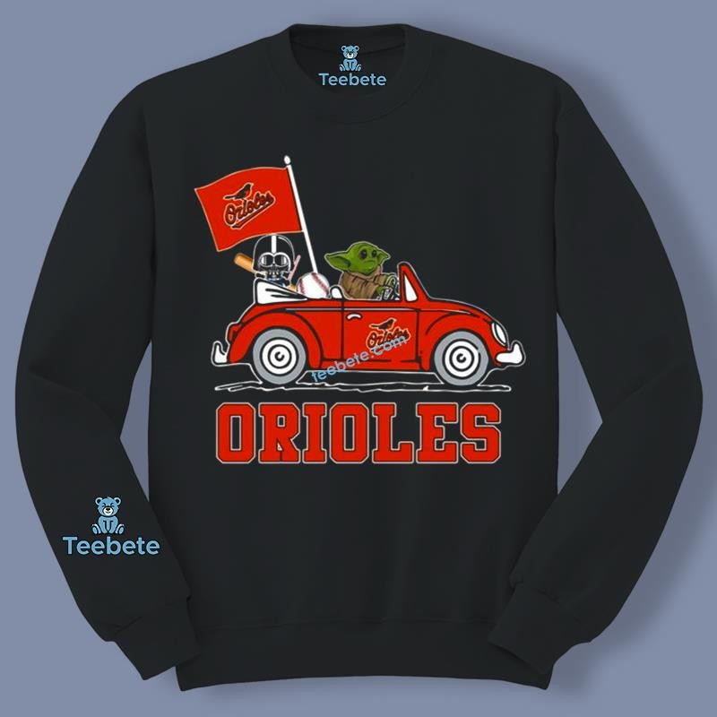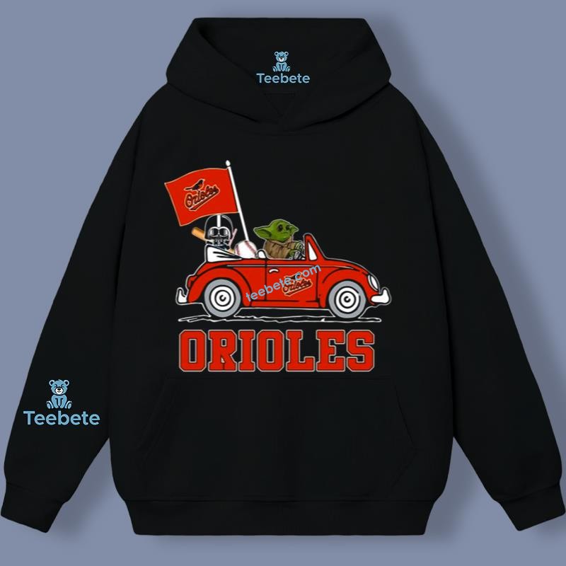 The Baltimore Orioles Darth Vader Baby Yoda Driving Star Wars Shirt Trendy For Women is a fun and stylish way for female fans to combine their love of baseball and Star Wars. Featuring a bold design of Darth Vader and Baby Yoda, this shirt is perfect for those who want to add a touch of galactic flair to their Orioles game-day attire. With its trendy, modern fit, this shirt provides comfort and style, making it suitable for casual outings or even sporting events. Whether you’re at the ballpark or meeting friends for coffee, this shirt is a great way to show your support for the Orioles and your Star Wars fandom. Pair it with Orioles-themed accessories or Star Wars-themed jewelry for a stylish and coordinated look.