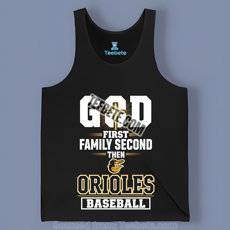 The design itself is a testament to simple elegance. The bold Baltimore Orioles logo stands out proudly, while the “God First, Family Second” message serves as a powerful reminder of what truly matters. It’s a subtle yet impactful design that showcases your dedication to both your faith, family, and favorite team without being overwhelming.