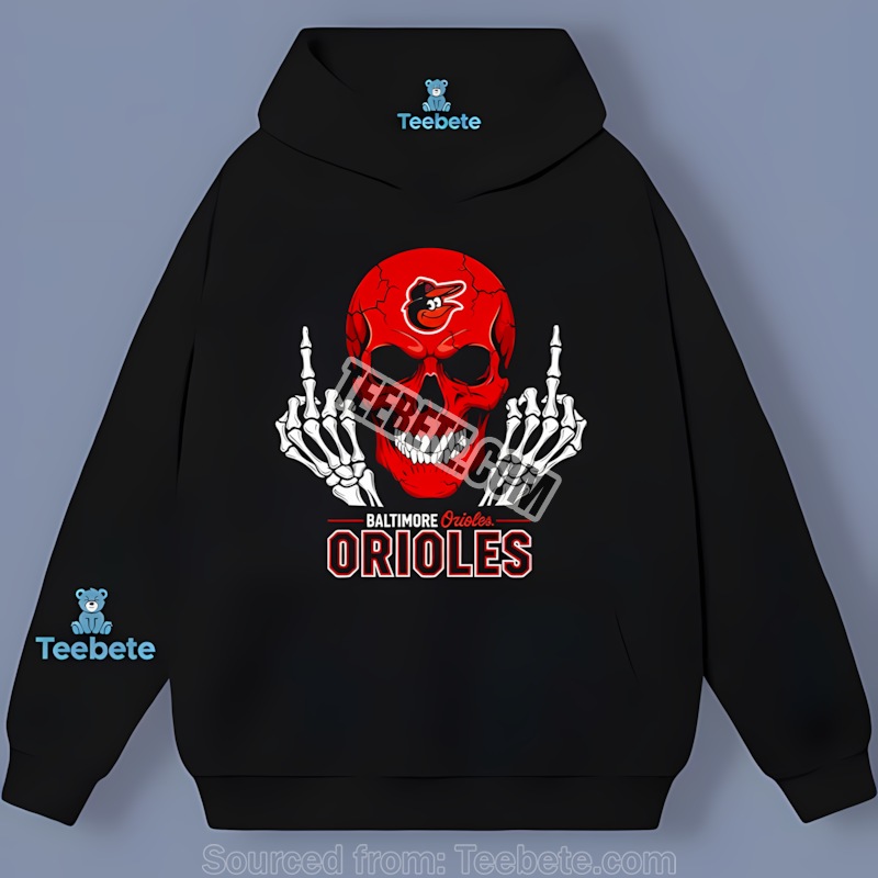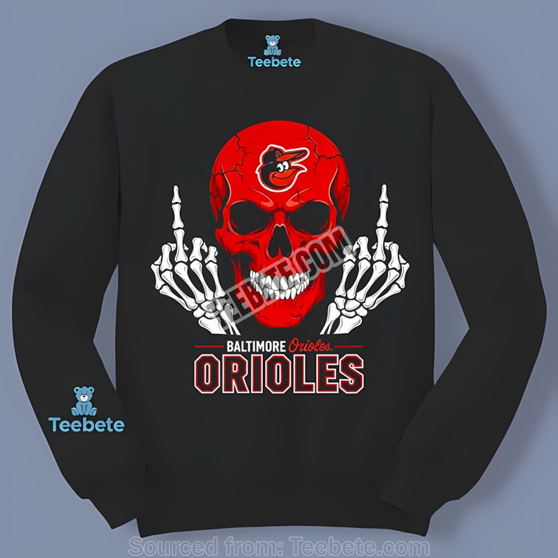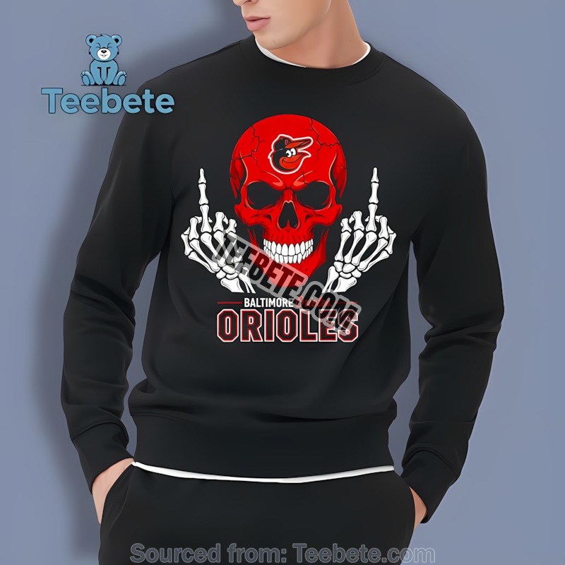 Don’t miss out on the chance to own this unique piece of fan apparel. Order your Baltimore Orioles Skull Middle Finger Graphic Shirt from Teebete today!