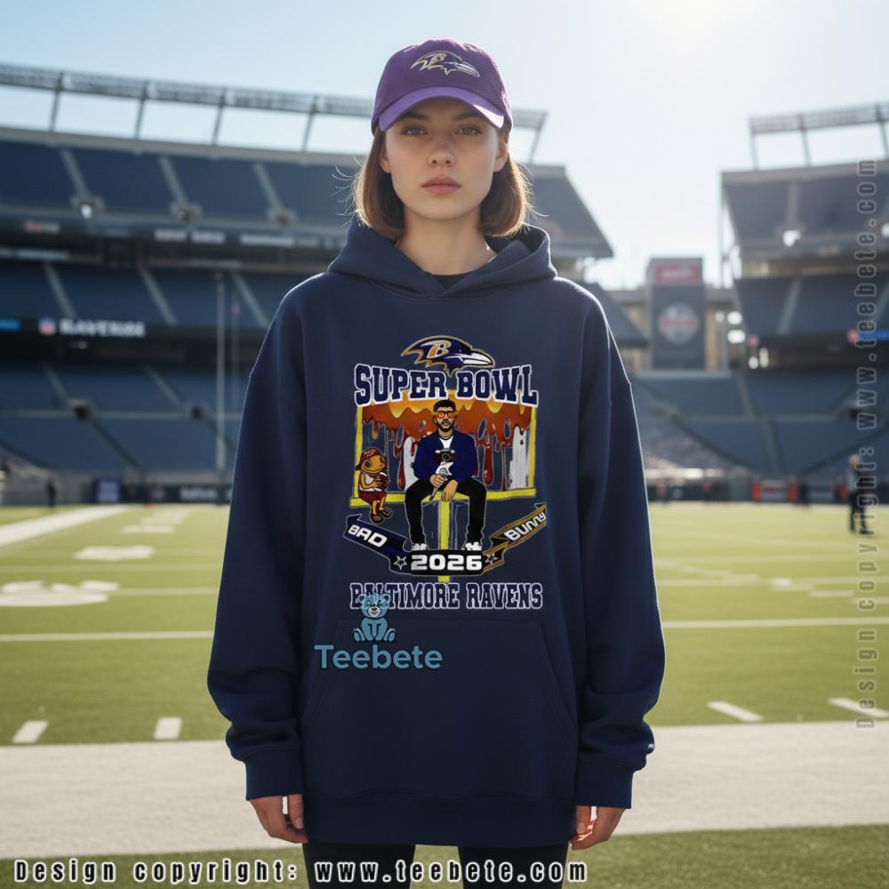 The design celebrates the intersection of football’s biggest game with halftime entertainment, commemorating a potential Super Bowl appearance and star-studded performance. Perfect for fans anticipating championship glory, collectors of Super Bowl memorabilia, or supporters excited about the fusion of sports and music on football’s grandest stage, this shirt captures the full spectacle of modern Super Bowl culture. The throne imagery and golden elements convey championship royalty, offering Ravens faithful an early way to celebrate potential 2026 glory while acknowledging the entertainment that makes the Super Bowl a cultural phenomenon beyond just the game itself.