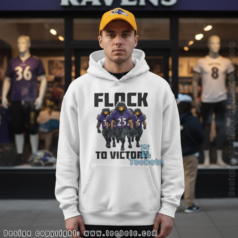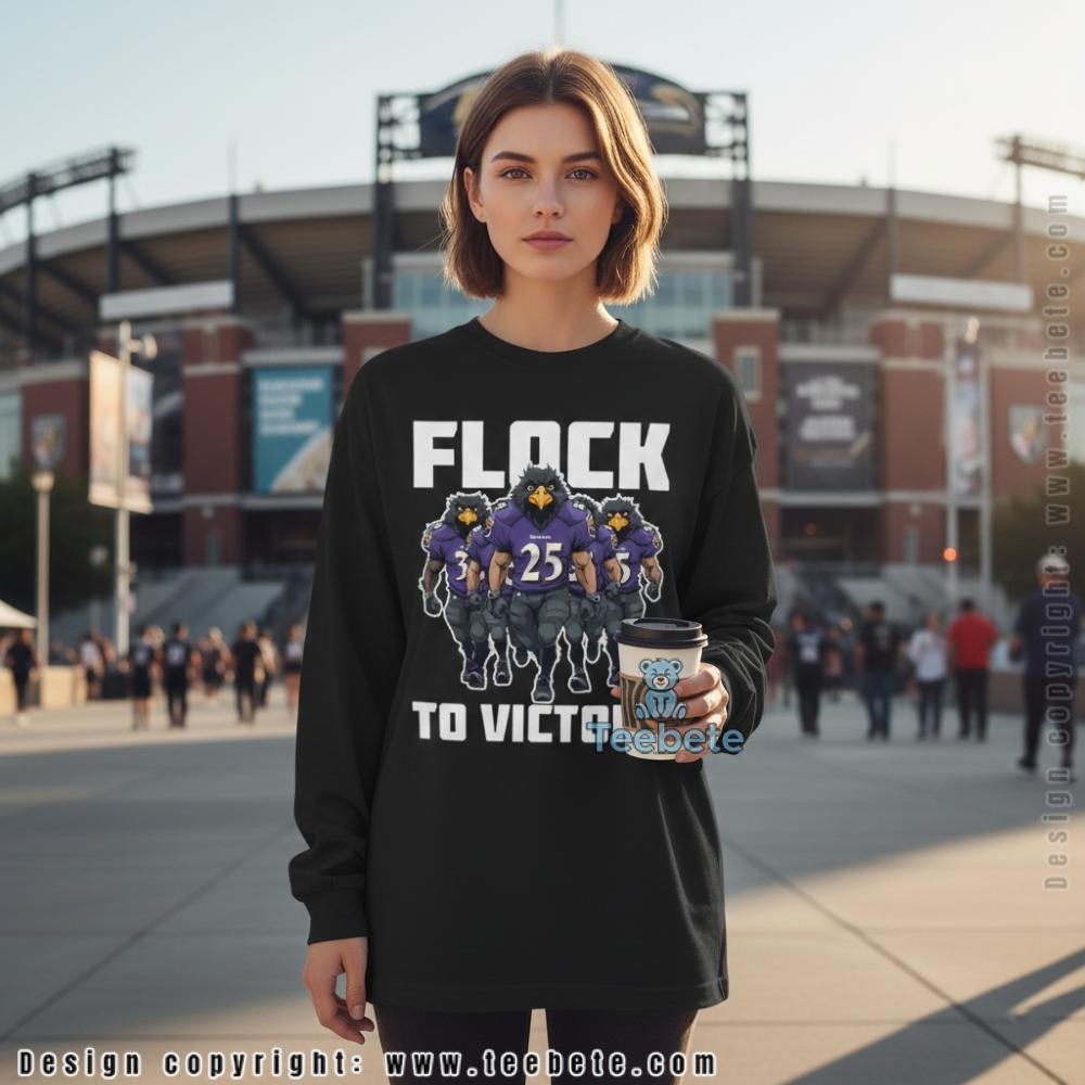 Victory in Baltimore is never a solo effort. It’s built on defensive stands, explosive runs, and a fanbase that shows up through every weather condition and every season’s challenge. This design honors that collective mentality. The term “flock” isn’t just a nickname; it represents thousands of voices roaring as one, a city that rallies behind its team with unshakable belief. Wearing this shirt connects you to that tradition of shared triumph and resilient pride.