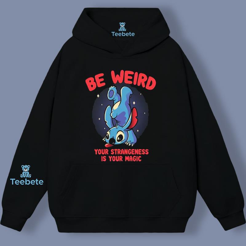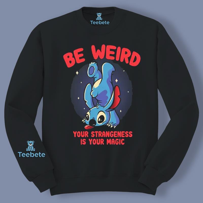 Embrace your individuality with the Be Weird Your Strangeness Is Magic Stitch Quote Shirt. This shirt, featuring a classic quote from the lovable alien Stitch, encourages everyone to embrace their quirks. Made from soft, breathable fabric, it offers comfort and durability for any occasion. The whimsical design makes it perfect for fans of Lilo & Stitch who want to show off their unique sense of style. Wear it with your favorite pair of jeans, a cozy cardigan, and some fun sneakers for a laid-back yet fashionable look. Pair it with other quirky accessories, such as a fun hat or bold-colored shoes, to complete your statement. This shirt is a great conversation starter, so get ready for lots of compliments when you wear it out.