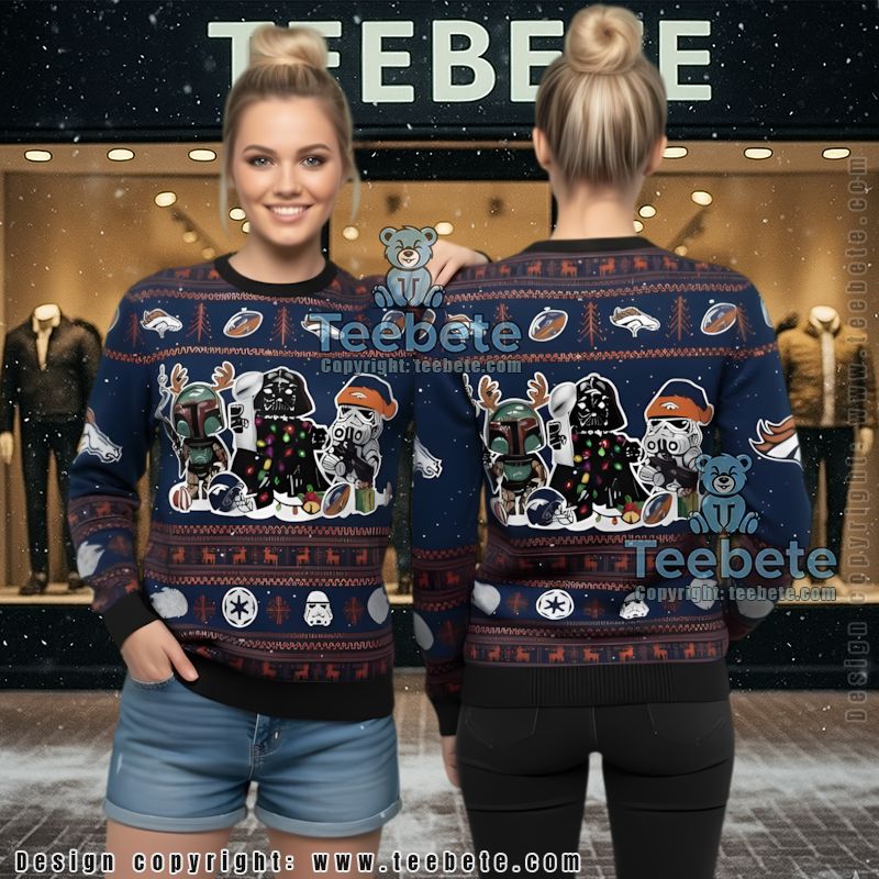 Don’t miss out on this delightful blend of fandom and festivity—ideal for gifting or wearing yourself. Celebrate the holidays and showcase your team spirit with the Denver Broncos Boba Fett Darth Vader Ugly Christmas Sweater Blue. This is the perfect way to embrace the season while showing love for your favorite team!
