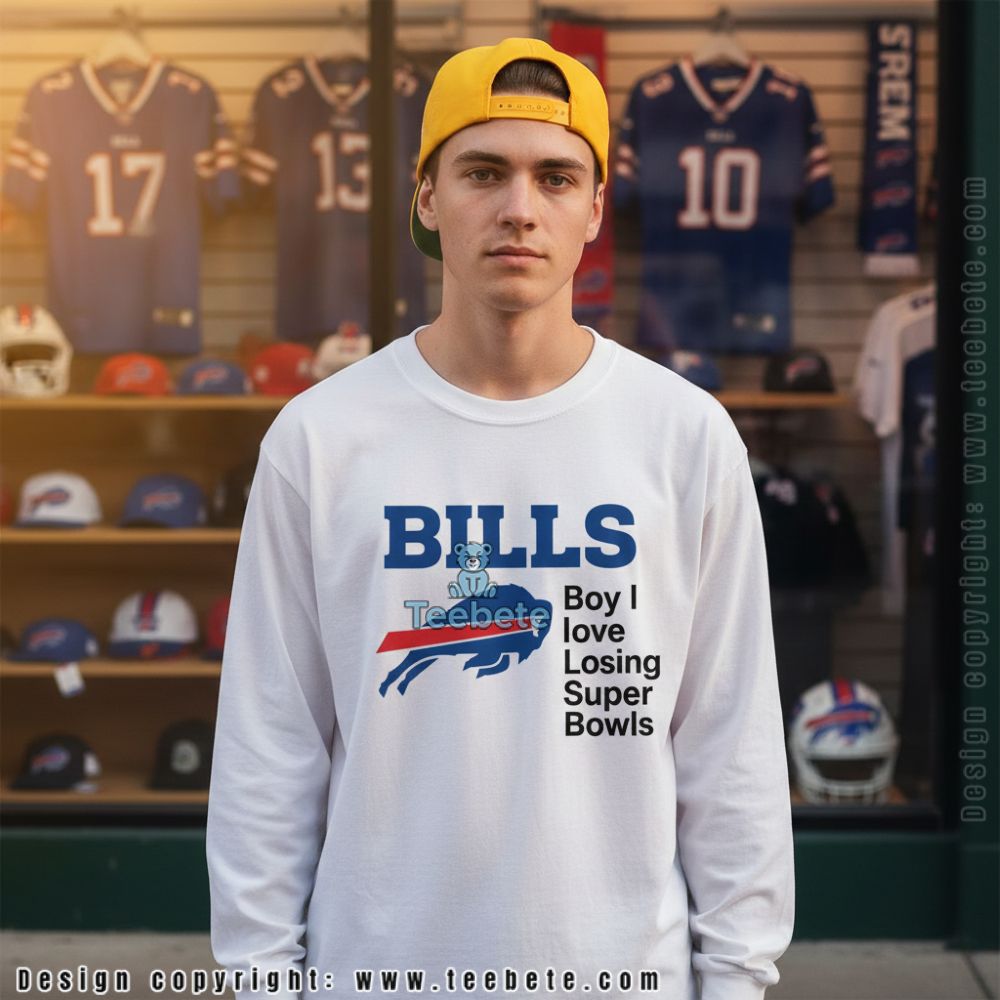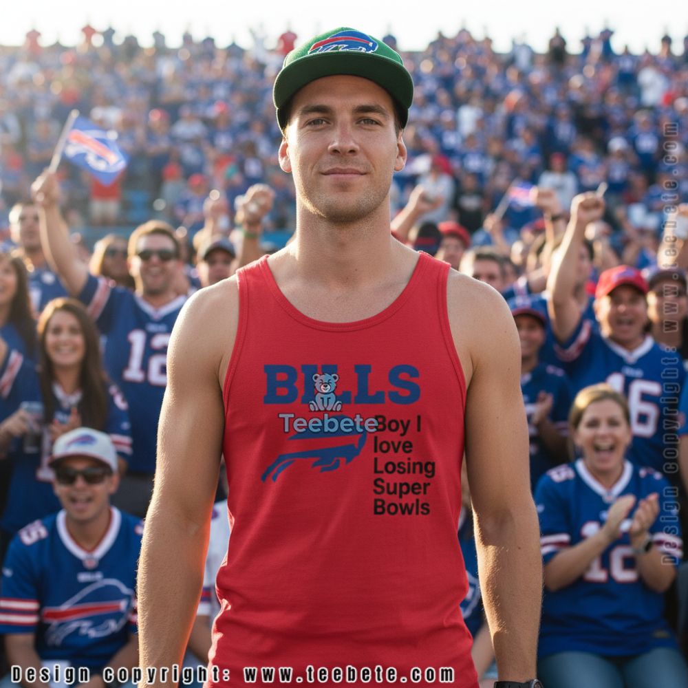 Fresh and vibrant, the Boy I Love Losing Super Bowls Buffalo Shirt features an engaging design layout perfect for enthusiasts of playful sports humor. Crafted as a comfortable T-Shirt, it showcases bold, eye-catching typography centered on the front. The graphics are complemented by fun icons that evoke a spirited atmosphere, layered against a striking color palette of deep blues and fiery reds. Full-coverage printing brings the design to life, ensuring each detail pops with clarity and impact, making it a perfect addition to any casual wardrobe.
