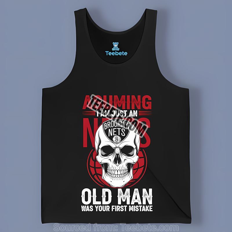 Introducing the Brooklyn Nets Skull Assuming I Am Just An Old Man Shirt from Teebete, a bold expression of fandom that seamlessly combines humor and team spirit. This unique design represents not just a commitment to the Nets but also a playful commentary on loyalty and age. It captures the essence of being a lifelong supporter, embracing not only the game but also the stories and memories shared over the years.