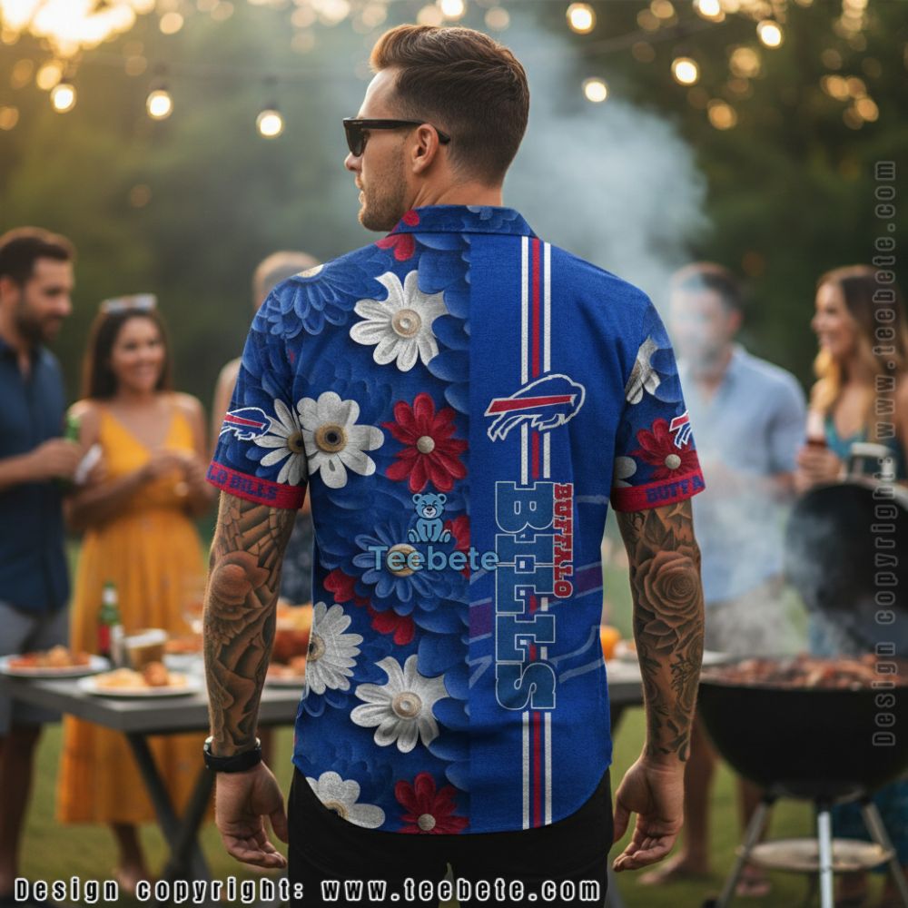 This Buffalo Bills Blue and White Daisy Pattern Hawaiian Shirt showcases an exciting blend of tropical flair and team spirit, perfect for embracing sunny days. The shirt features a vibrant blue background complemented by an eye-catching white daisy pattern, strategically arranged for a visually engaging layout. The full-surface sublimation printing technique ensures that every inch of this Hawaiian shirt bursts with rich colors and intricate details, creating a lively canvas that celebrates both leisure and loyalty.