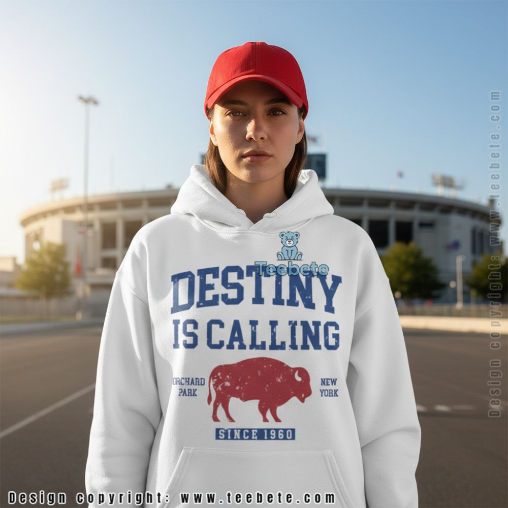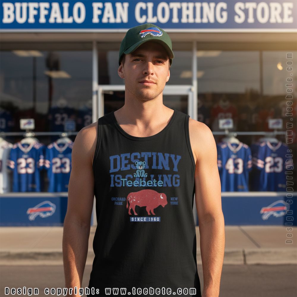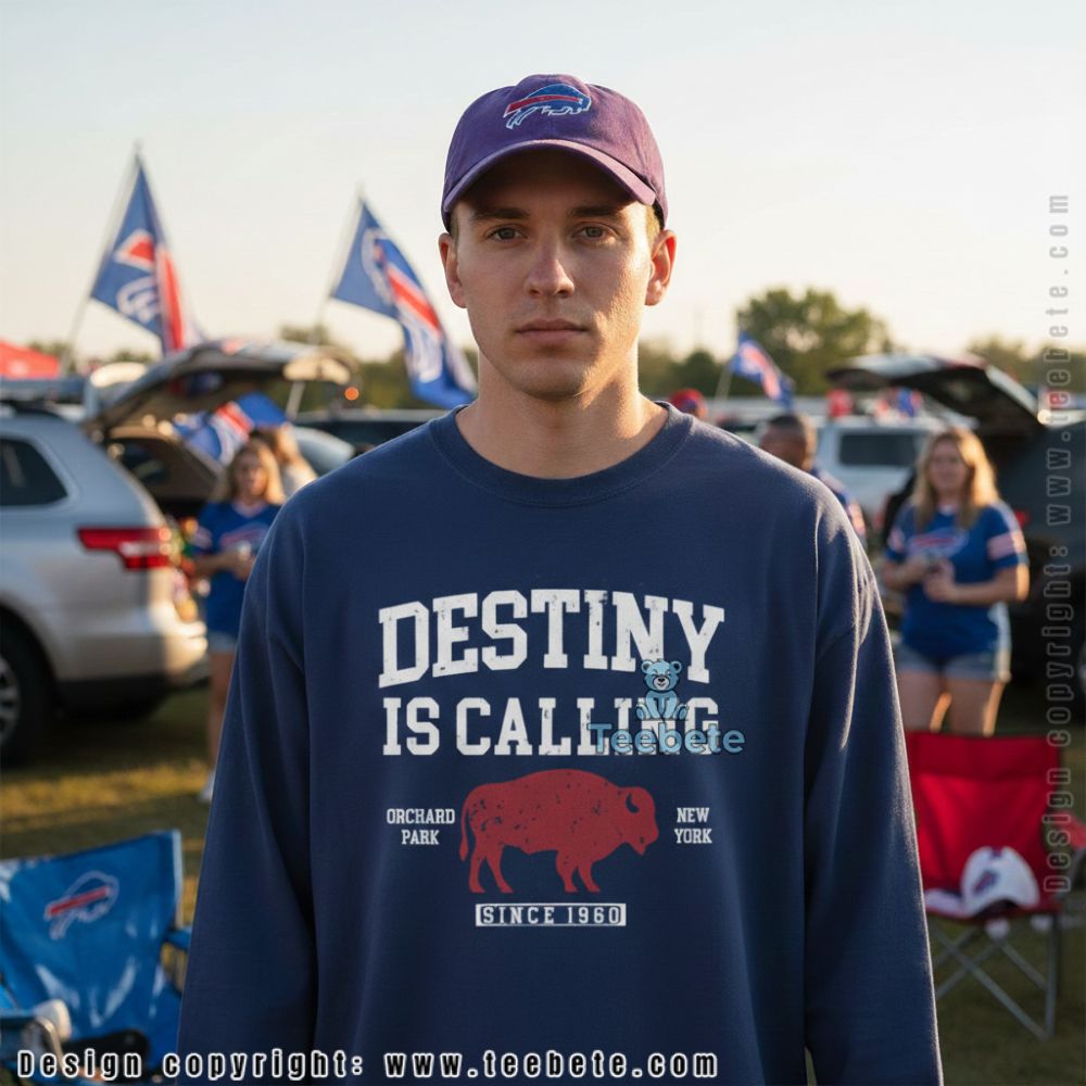 Elevate your wardrobe with the Buffalo Bills Destiny Is Calling Mafia Shirt from Teebete. This striking T-shirt showcases a bold visual design, prominently featuring a dynamic arrangement of graphics that encapsulate the essence of team spirit. The centerpiece combines eye-catching imagery and text, all set against a vibrant color palette that contrasts deep blues and fiery reds. Utilizing full-surface printing, the shirt delivers a seamless, immersive graphic experience that captures attention from every angle.