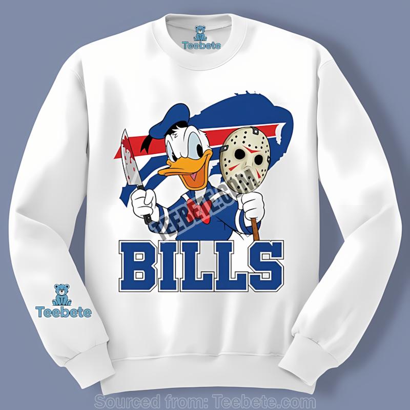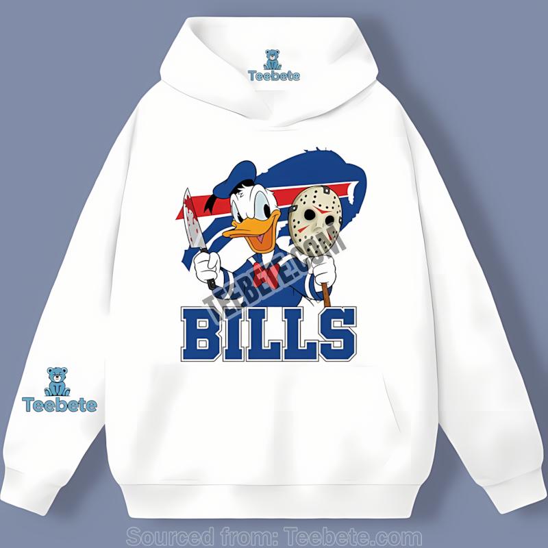 Dive into the spirit of Halloween with the Buffalo Bills Donald Duck Jason Mask Halloween Shirt from Teebete, where the love for football meets fun, macabre creativity. Inspired by two iconic figures, this shirt celebrates your Buffalo Bills pride while delivering a playful twist. Imagine stepping into your favorite haunted house or tailgating party, blending the fierce energy of the game with the eerie vibes of Halloween—this shirt has you covered.