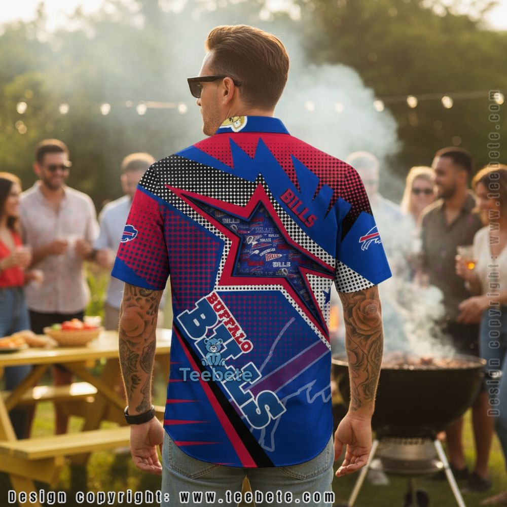 Crafted with a vibrant aesthetic, the Buffalo Bills Graphic Star Pattern Royal Blue Hawaiian Shirt showcases a playful composition that captures the spirit of fun and celebration. Its full-coverage design features an energetic arrangement of white stars intertwined with the team’s colors, creating a harmonious contrast against the rich royal blue backdrop. The eye-catching graphics are printed using advanced techniques that ensure a clean and seamless finish, making this Hawaiian shirt a standout piece for any casual outing or festive gathering.