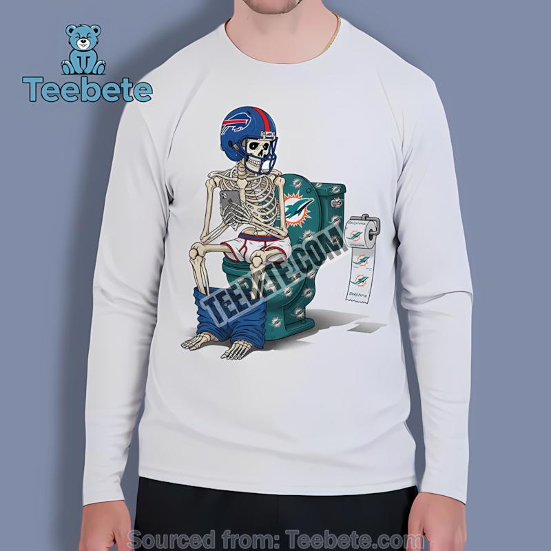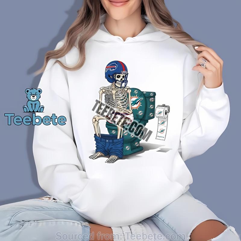 With each wear, you’ll not only flaunt your team pride but also spark conversations and connections with fellow fans who share your passion. Don’t miss out on adding this unique design to your wardrobe. Grab your Miami Dolphins vs Bills fan shirt today and show off your love for one of football’s most entertaining rivalries. Purchase the Buffalo Bills Skeleton Toilet Miami Dolphins Rivalry Shirt now!