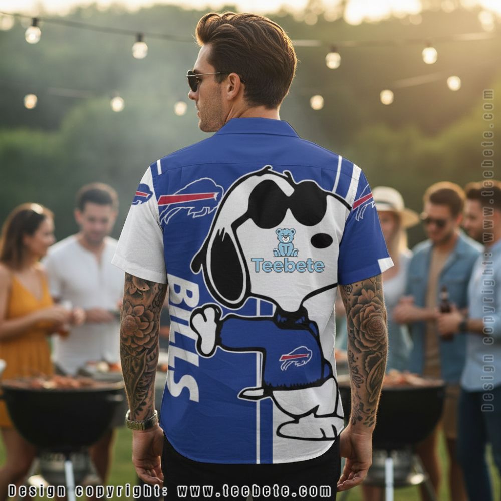 Drenched in vibrant hues, the Buffalo Bills Snoopy Joe Cool Hawaiian Shirt captures attention with its lively arrangement of playful graphics and bold patterns. This Hawaiian shirt features a delightful mix of imagery showcasing Snoopy in various laid-back poses, seamlessly integrated with iconic Buffalo Bills colors. The full-coverage printing technique enhances the design, ensuring that the visuals flow effortlessly across the fabric, creating a sense of unity and flair. The contrasting colors create a striking yet harmonious look, making it a true statement piece for any fan.