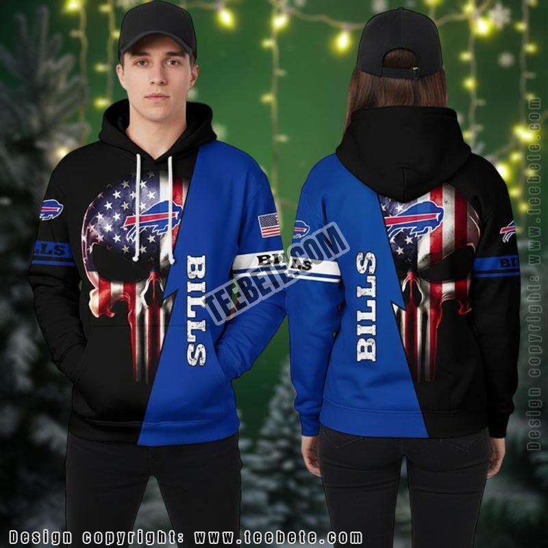 Product information "Buffalo Bills Us Flag Skull 3D Hoodie Black Blue Outfit"