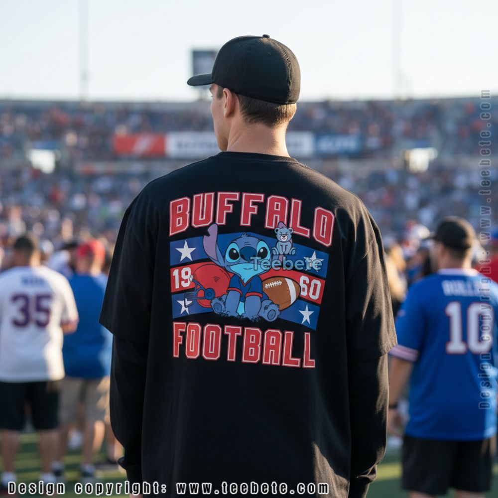 Diverse apparel options such as graphic tees, long-sleeve shirts, and cozy hoodies shine in the intricate design of the Buffalo Football Stitch 1960 Game Day Shirt. This standout piece boasts a dynamic visual layout with a vibrant illustration that pays tribute to vintage football aesthetics. Eye-catching graphics harmonize with spirited text, showcased against a background with a rich color palette of deep greens, classic whites, and striking reds. The design employs full-coverage printing techniques, ensuring that every detail is vividly alive, making it a must-have for any fan.