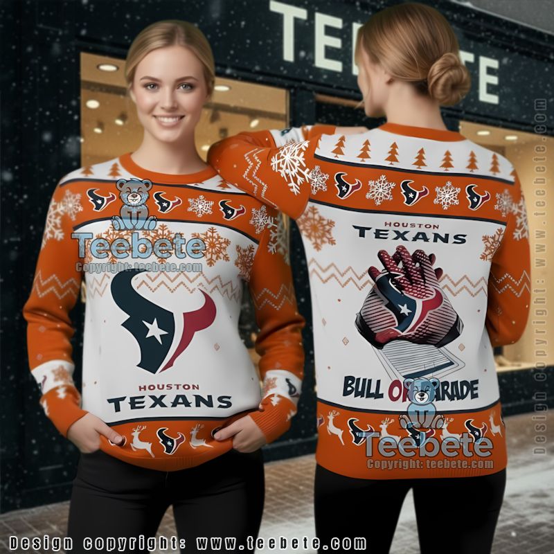 Product information "Bulls On Parade Houston Texans Ugly Christmas Cardigan White Orange"