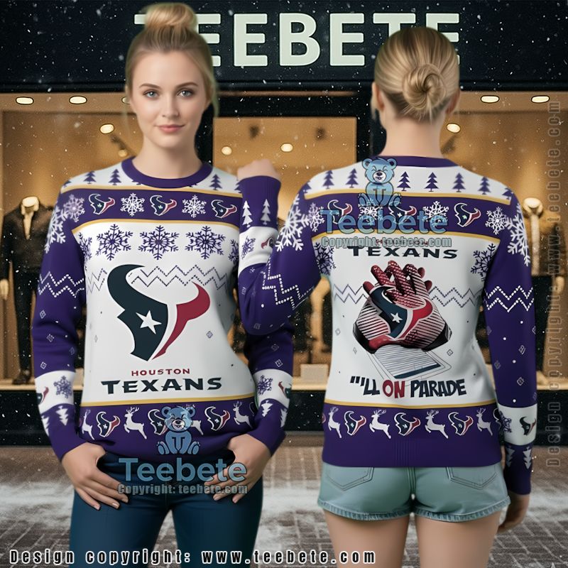 Don’t miss your chance to shine this holiday season with the Bulls On Parade Houston Texans Ugly Christmas Sweater On Sale White Purple. It’s the perfect gift for any fan or a must-have for your own collection. Elevate your festive wardrobe with this charming piece that uniquely combines team spirit and holiday cheer!