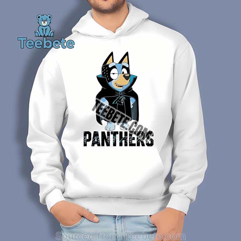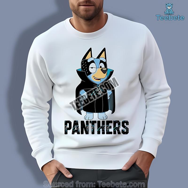 Imagine a crisp October evening spent gathering with friends for trick-or-treating or a late-night haunted house adventure, all while sporting an eye-catching Carolina Panthers Halloween shirt. This vibrant and playful design features a whimsical Bluey dressed as a vampire—striking a balance between festive spirit and team pride. It’s a conversation starter, ensuring you stand out in the crowd as the ultimate fan.
