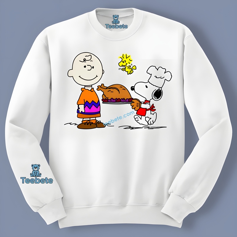 Celebrate Thanksgiving with the Charlie Brown And Snoopy Chef Thanksgiving Turkey Dinner Shirt, a whimsical design featuring the iconic Peanuts characters Charlie Brown and Snoopy preparing a Thanksgiving feast. The shirt showcases the beloved duo alongside a delicious-looking turkey dinner, making it the perfect way to express your holiday spirit. Made from soft cotton, this shirt ensures comfort throughout the day, whether you’re enjoying a family meal, attending a holiday gathering, or just relaxing at home. Its unisex fit makes it suitable for both men and women, and it pairs well with casual outfits like jeans, skirts, or leggings. For a cozy touch, layer it with a sweater or jacket. The Charlie Brown And Snoopy Chef Thanksgiving Turkey Dinner Shirt is a fun, festive way to celebrate the holiday season and show your love for Peanuts.