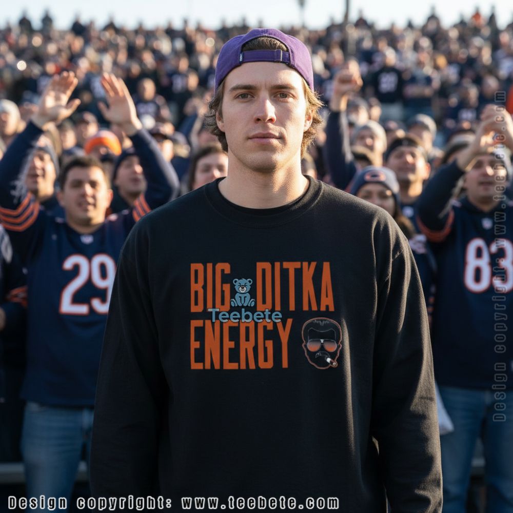 A standout addition to any fan’s wardrobe, the Chicago Bears Big Ditka Energy Shirt showcases a striking design that captures the essence of team spirit. This T-shirt presents an eye-catching layout with bold graphics prominently displayed across the front. The central imagery features a dynamic illustration that pays homage to sports legend Ditka, surrounded by energetic typography in bright, contrasting colors. The full-coverage printing technique ensures the design remains vivid from every angle, making this shirt a must-have for any Bears devotee.