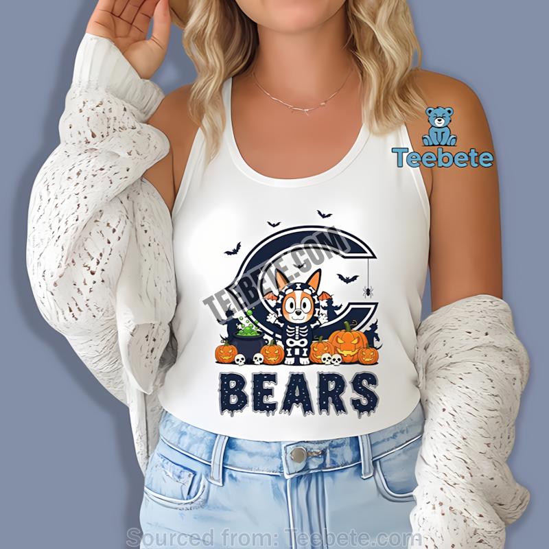 Don’t miss out on this one-of-a-kind piece from Teebete. Whether you’re treating yourself or gifting a fellow Bears enthusiast, the Chicago Bears Bingo Bluey Halloween Skeleton Pumpkin Shirt is sure to delight. Order yours today and get ready to make a statement this Halloween!