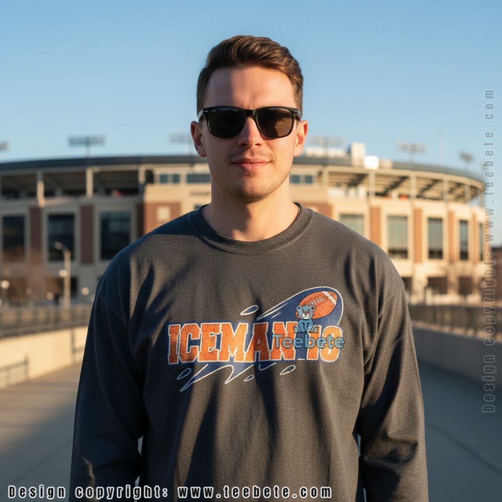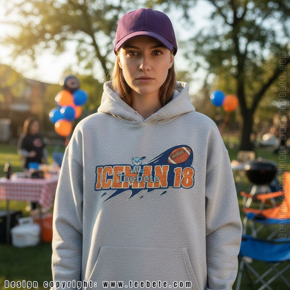 Diverse apparel options like T-shirts and hoodies are brought to life with the Chicago Bears ICEMAN 18 Shirt. Bold graphics combine elements of team spirit with a contemporary flair, showcasing striking imagery that encapsulates the essence of fierce competition. The design employs a full-surface 3D printing technique, adding depth and dimension to the artwork. Rich blue and orange hues dominate the palette, ensuring high contrast that commands attention, perfect for showcasing team pride in any setting.