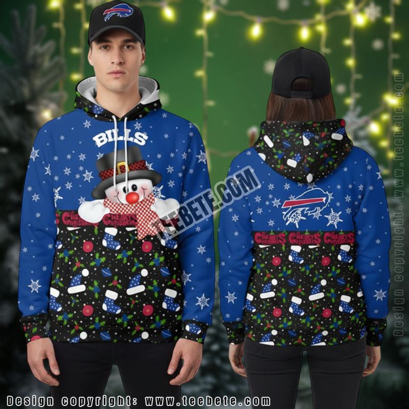 Embrace the festive spirit with the Buffalo Bills Christmas Snowman 3D Zip Up Hoodie Blue. This playful design combines holiday cheer and team pride, making it the perfect piece for any true Buffalo Bills fan. Show off your love for the game while enjoying the lively atmosphere of the season with this fun hoodie.