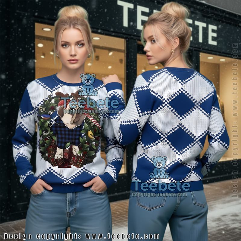 Comfort and style are paramount, which is why the Indianapolis Colts Christmas Wreath Pug Dog Most Ugly Christmas Sweater Blue by Teebete is crafted from high-quality polyester. This material ensures a cozy fit while allowing for easy movement, making it ideal for holiday parties, game days, or lounging around with friends. You’ll enjoy the warmth and versatility this sweater offers throughout the season.