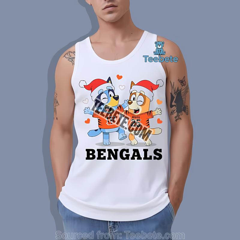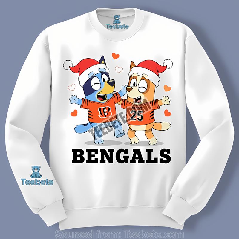 Don’t miss out on the opportunity to celebrate in style! Order the Cincinnati Bengals Bluey And Bingo Dancing Christmas Shirt today and share the joy of the season with fellow fans and family!