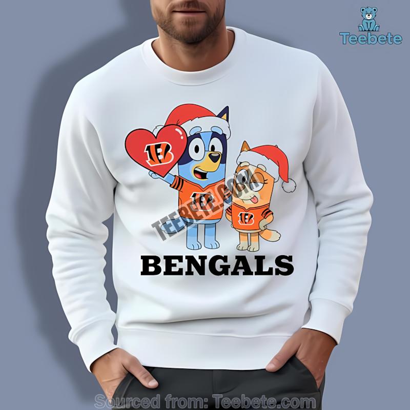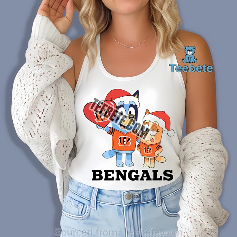 Don’t miss the opportunity to elevate your holiday wardrobe with a shirt that combines team spirit and festive cheer. Purchase the Cincinnati Bengals Bluey Bingo Christmas Heart Shirt now and be ready to spread the joy this holiday season!