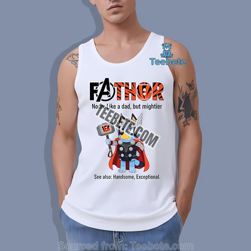 Imagine a Sunday filled with roaring cheers, the excitement of game day, and the unbreakable bond between father and child. The Cincinnati Bengals Bluey Fathor Dad Shirt effortlessly captures this spirit, bridging the love for the iconic Cincinnati Bengals with the heartwarming charm of “Bluey.” This unique design makes it more than just a shirt—it’s a celebration of family and sports pride that resonates with every Bengals fan.
