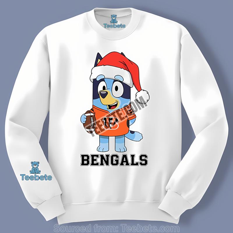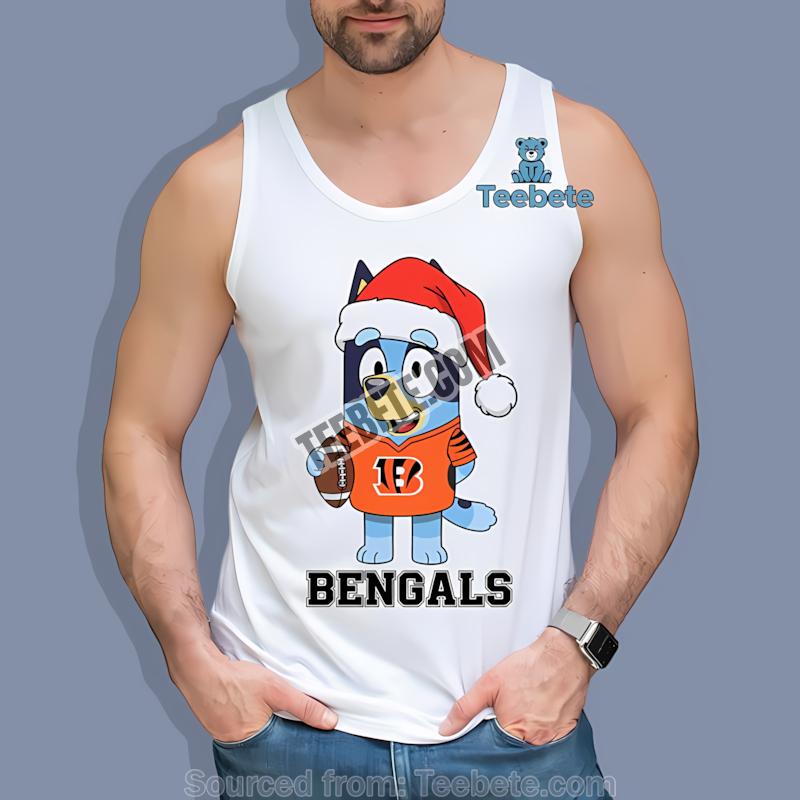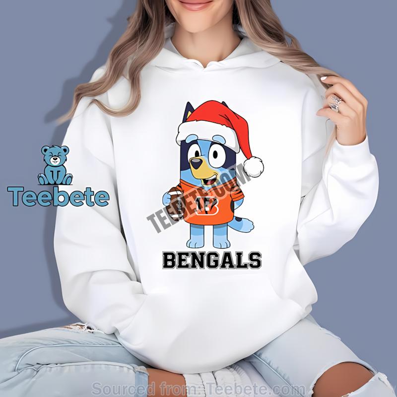 Don’t miss out—order your Cincinnati Bengals Bluey Santa Hat Christmas Shirt from Teebete today and make this holiday season unforgettable!