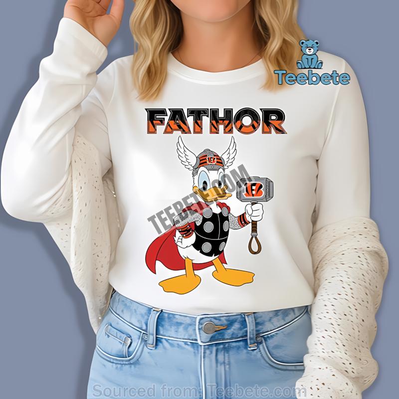 In the heart of Cincinnati, where the passion for football blends seamlessly with playful nostalgia, the inspiration for this design springs from the beloved world of classic cartoons. Imagine a spirited dad, adorned in a shirt that celebrates both his love for the Cincinnati Bengals and a whimsical character from his childhood. The Cincinnati Bengals Donald Duck Fathor Dad Shirt encapsulates this perfect harmony, offering a unique way to showcase devotion both to family and favorite teams.