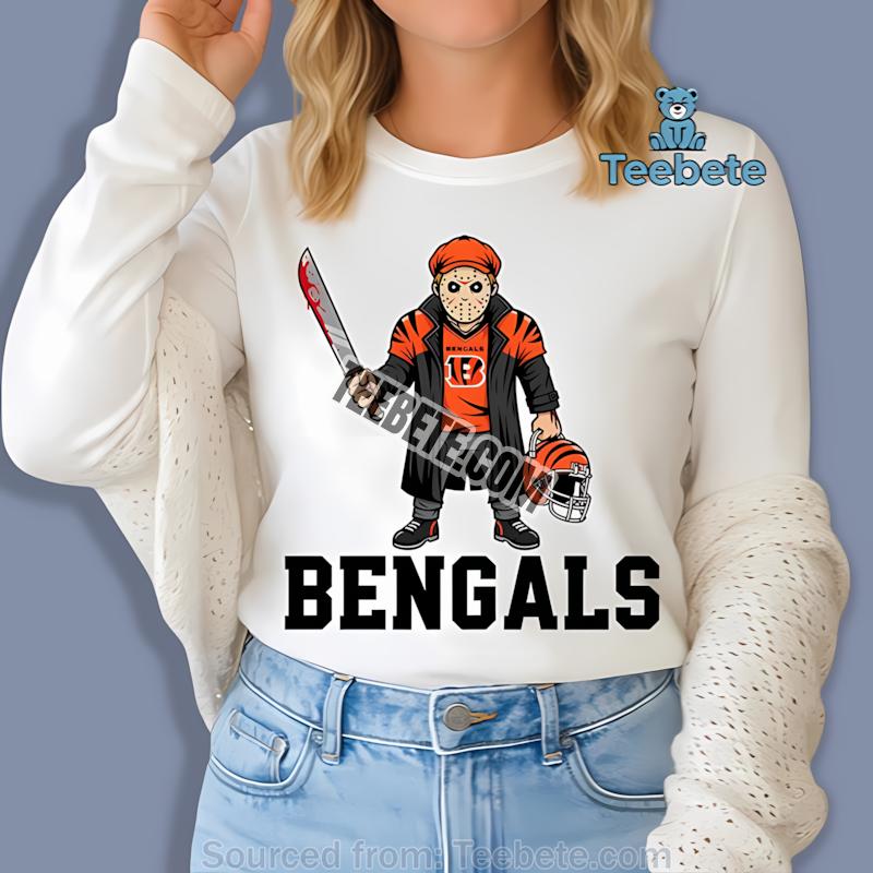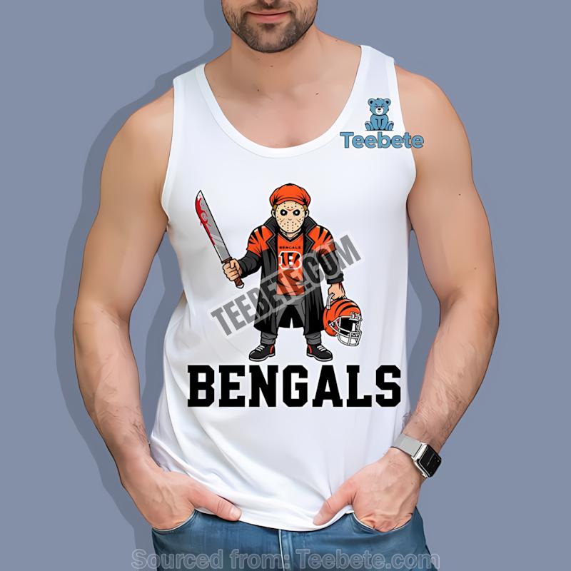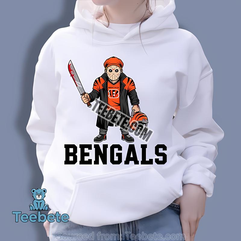 Elevate your collection with this striking piece from Teebete that perfectly merges your love for the Cincinnati Bengals and the excitement of horror films. Don’t miss out on owning this must-have item! Add the Cincinnati Bengals Jason Voorhees Horror Halloween Shirt to your cart today and prepare for a season of thrilling moments on and off the field!