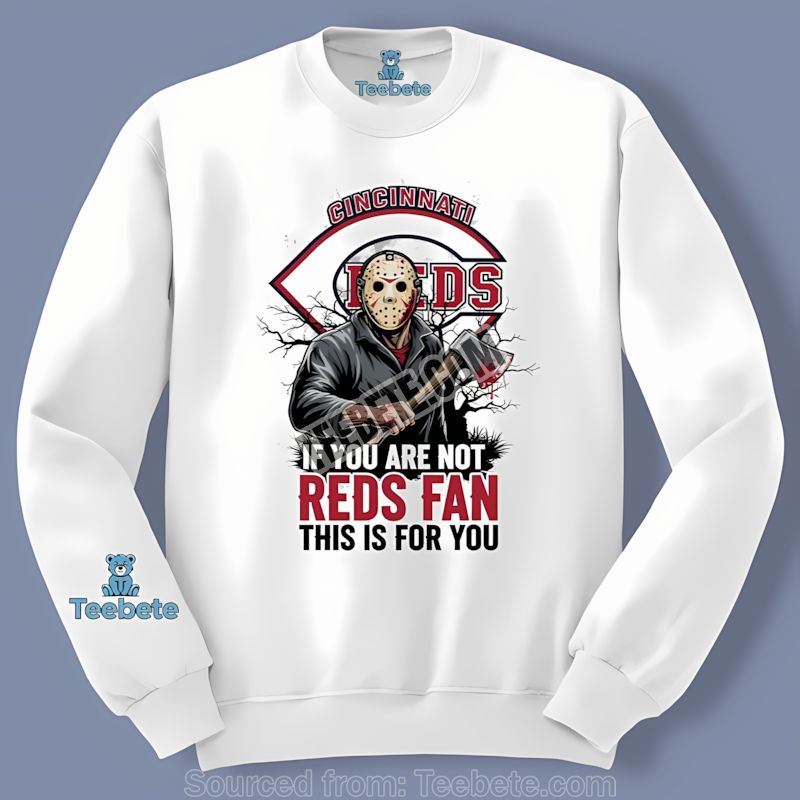 We offer a range of sizes to ensure the perfect fit for every fan. This shirt is more than just clothing; it’s a wearable piece of art, a conversation starter, and a bold expression of your individual style. It’s a perfect gift for the die-hard Reds fan with a dark side or the horror movie aficionado who loves a touch of baseball flair. Don’t miss out on owning a piece of this unique design.