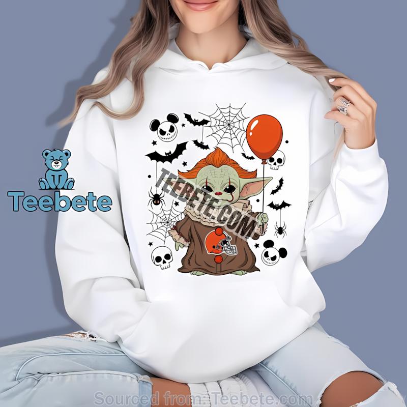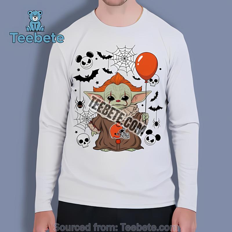 Don’t miss out on capturing the essence of your fandom! Purchase your Cleveland Browns Baby Yoda Pennywise Halloween Statement Shirt now and wear your excitement all season long!