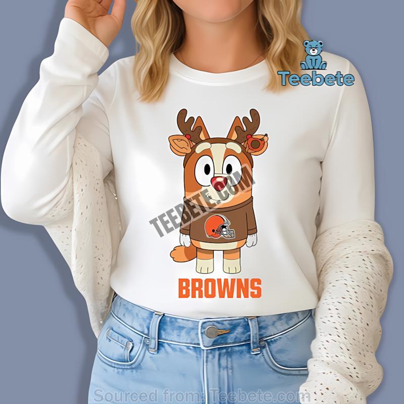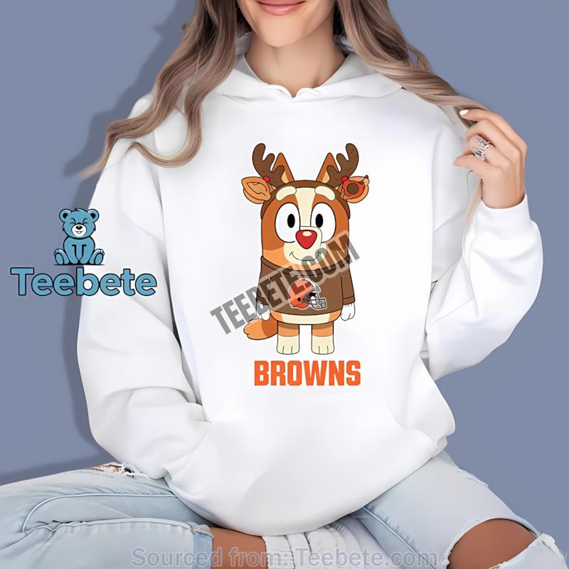 Don’t miss out on showcasing your team pride with a holiday twist. Elevate your wardrobe with this delightful Cleveland Browns festive graphic tee. Buy your Cleveland Browns Bluey Bingo Reindeer Christmas Graphic Shirt now and celebrate the season with style!