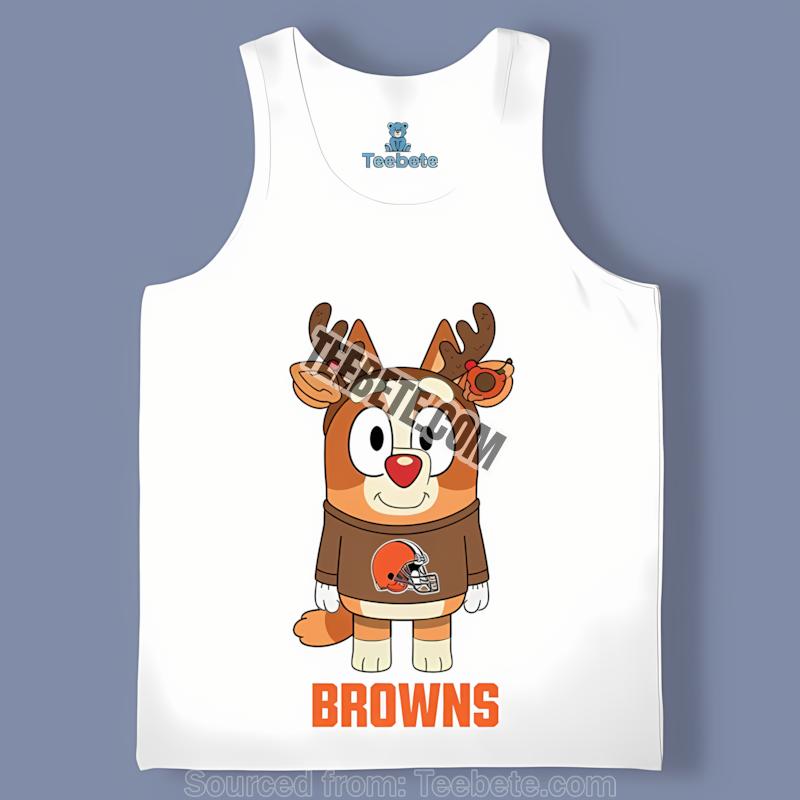 Embrace the spirit of the holiday season with a unique twist that blends your love for football and festive cheer, inspired by the beloved characters of Bluey. Our Cleveland Browns Bluey Bingo Reindeer Christmas Graphic Shirt captures the joyful essence of family festivities while celebrating your favorite NFL team. This festive apparel is more than just clothing; it’s a statement piece that shows your unwavering support for the Cleveland Browns during the most wonderful time of the year.