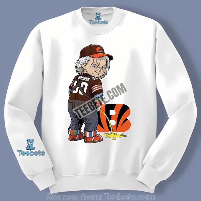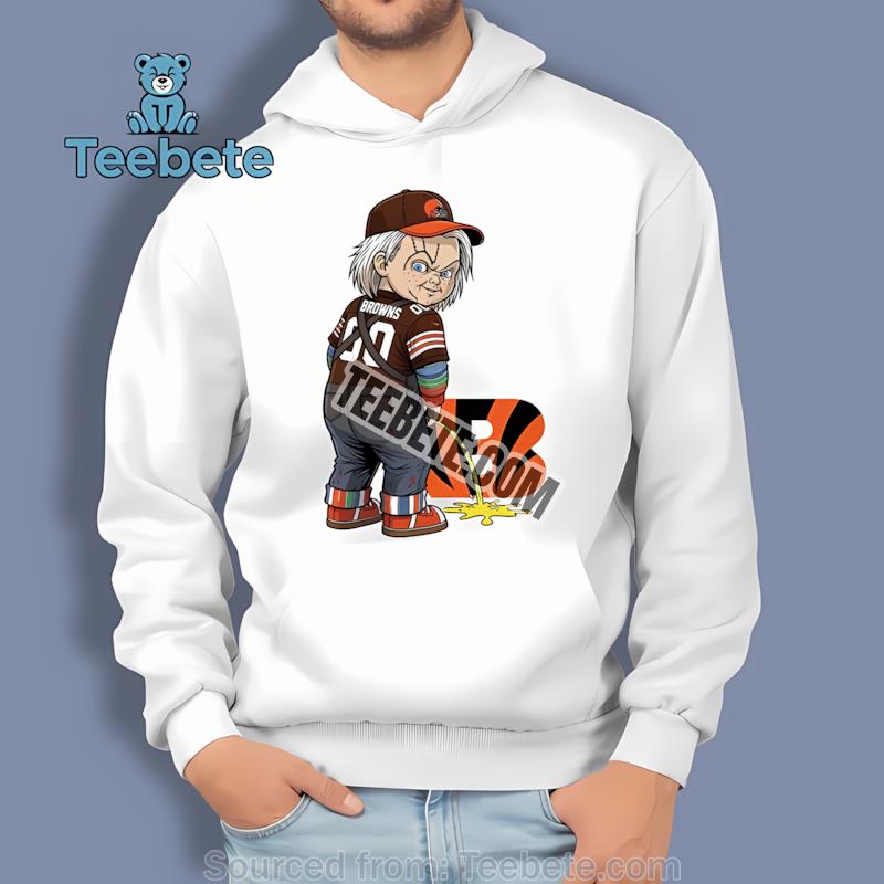 Don’t miss out on this must-have NFL Bengals Browns graphic tee. Perfect for game days, casual outings, or simply showing your love for the sport, it’s time to elevate your fan wardrobe. Grab your Cleveland Browns Chucky Vs Bengals Rivalry Adults Shirt from Teebete now, and wear your pride with style!